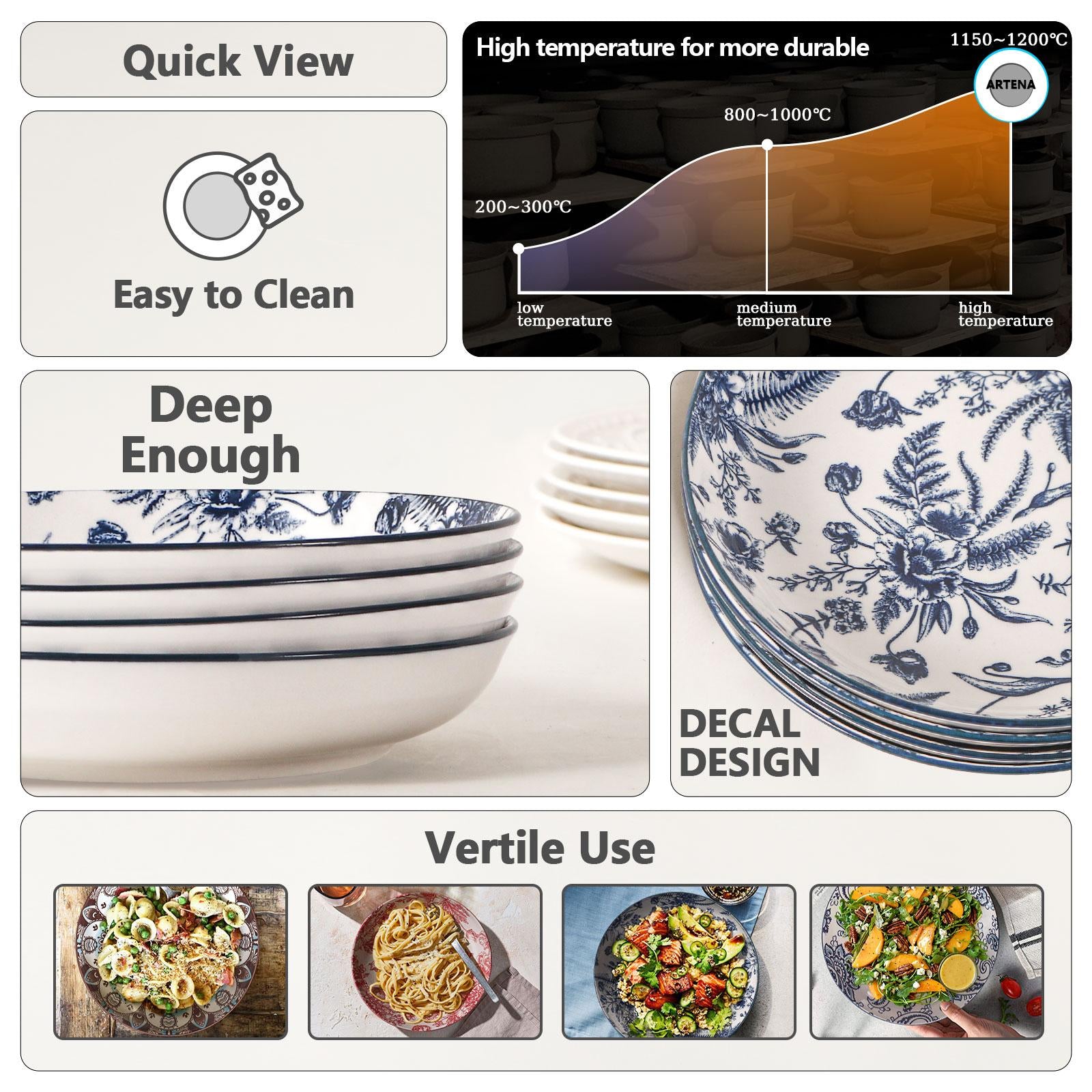 【Unique Colorful Pattern Design】Artena high quality pasta bowls are specially designed with different patterns. The unique patterns complement the overall home decor and reflect the happiness of the dining atmosphere, to enjoy your favorite food.