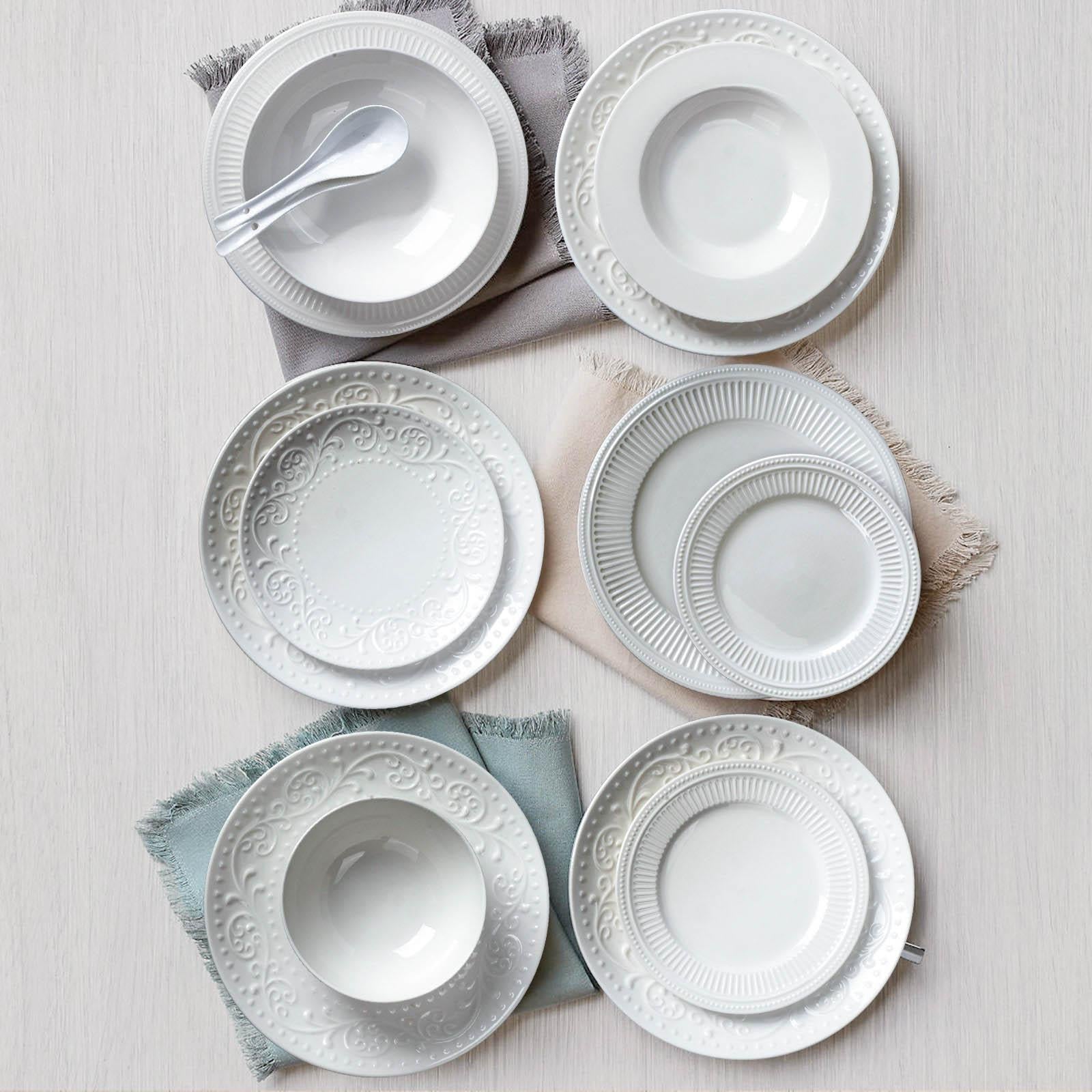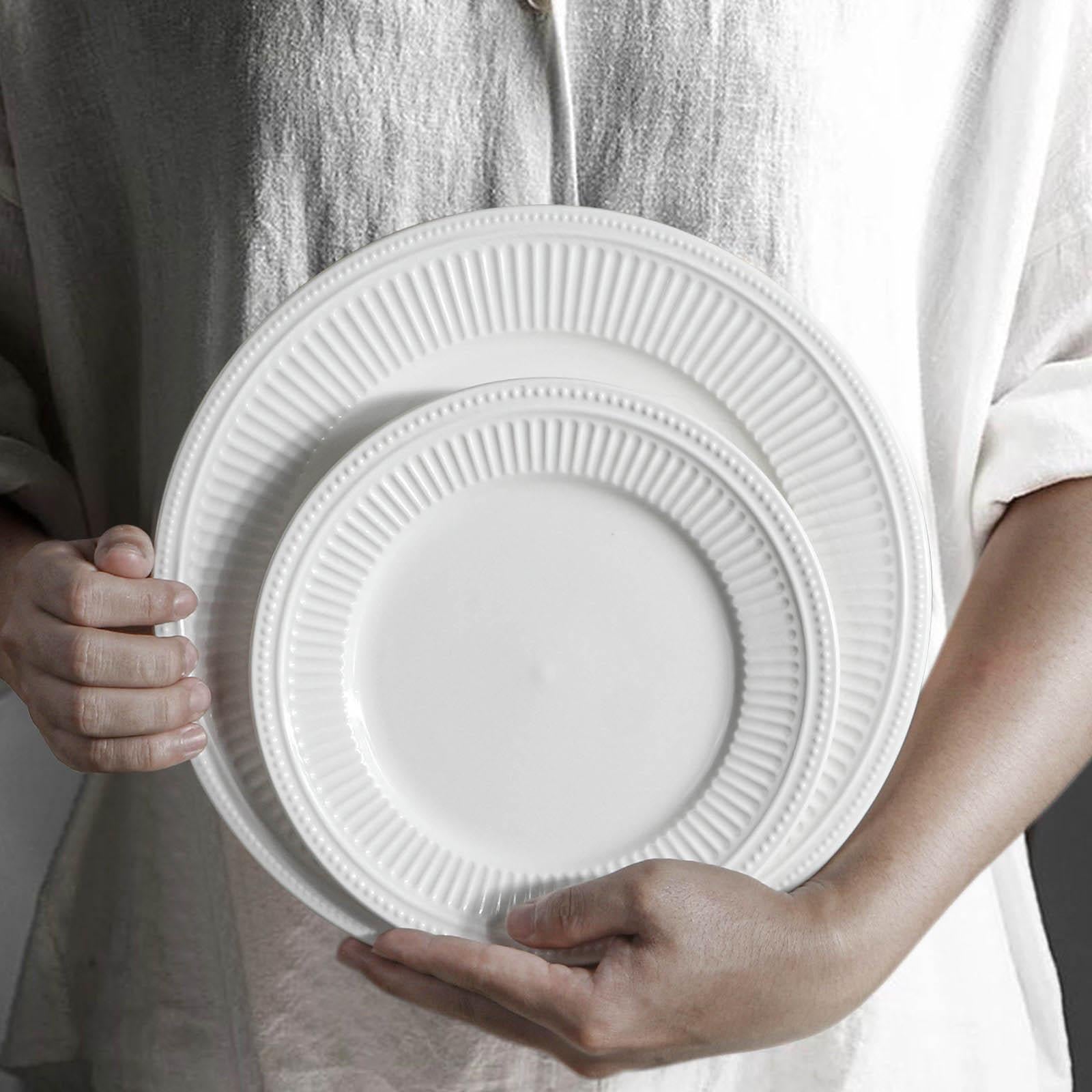 • 【Embossed Design】The beautiful embossed patterns are made with exquisite craftsmanship, which makes each dinner plates unique. These classic and generous kitchen plates look stylish and fantastic on the table and the white color fits all decorations and is a timeless classic.