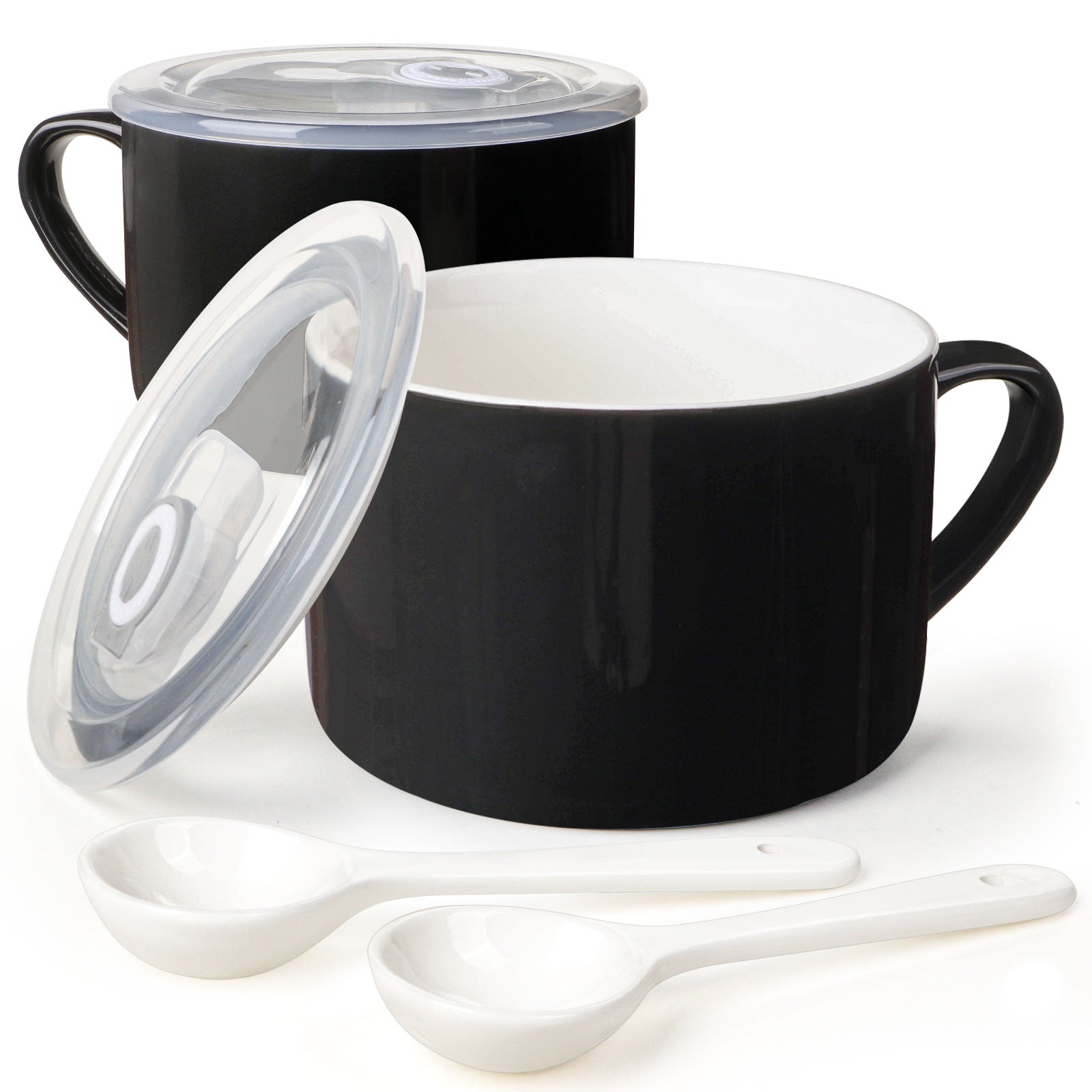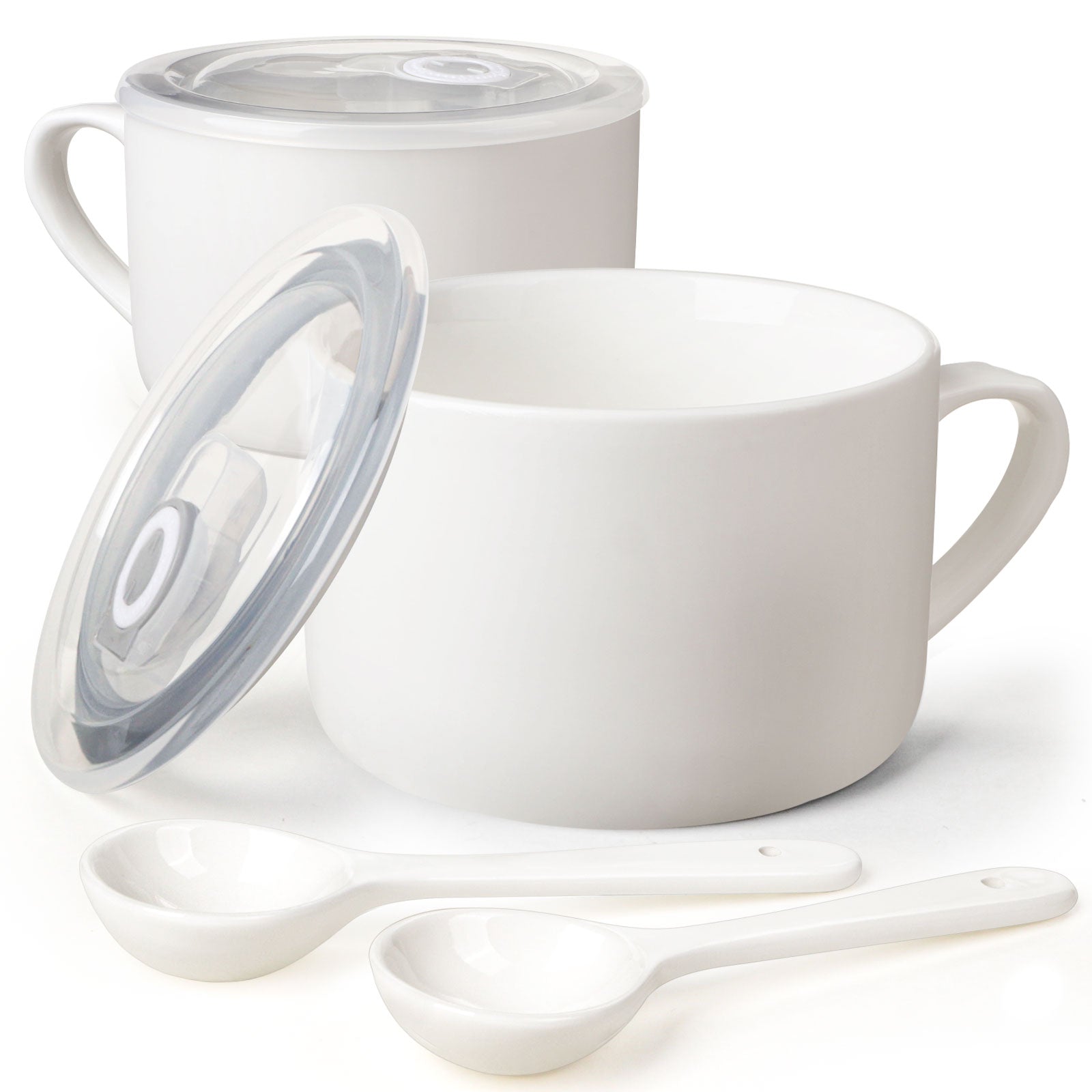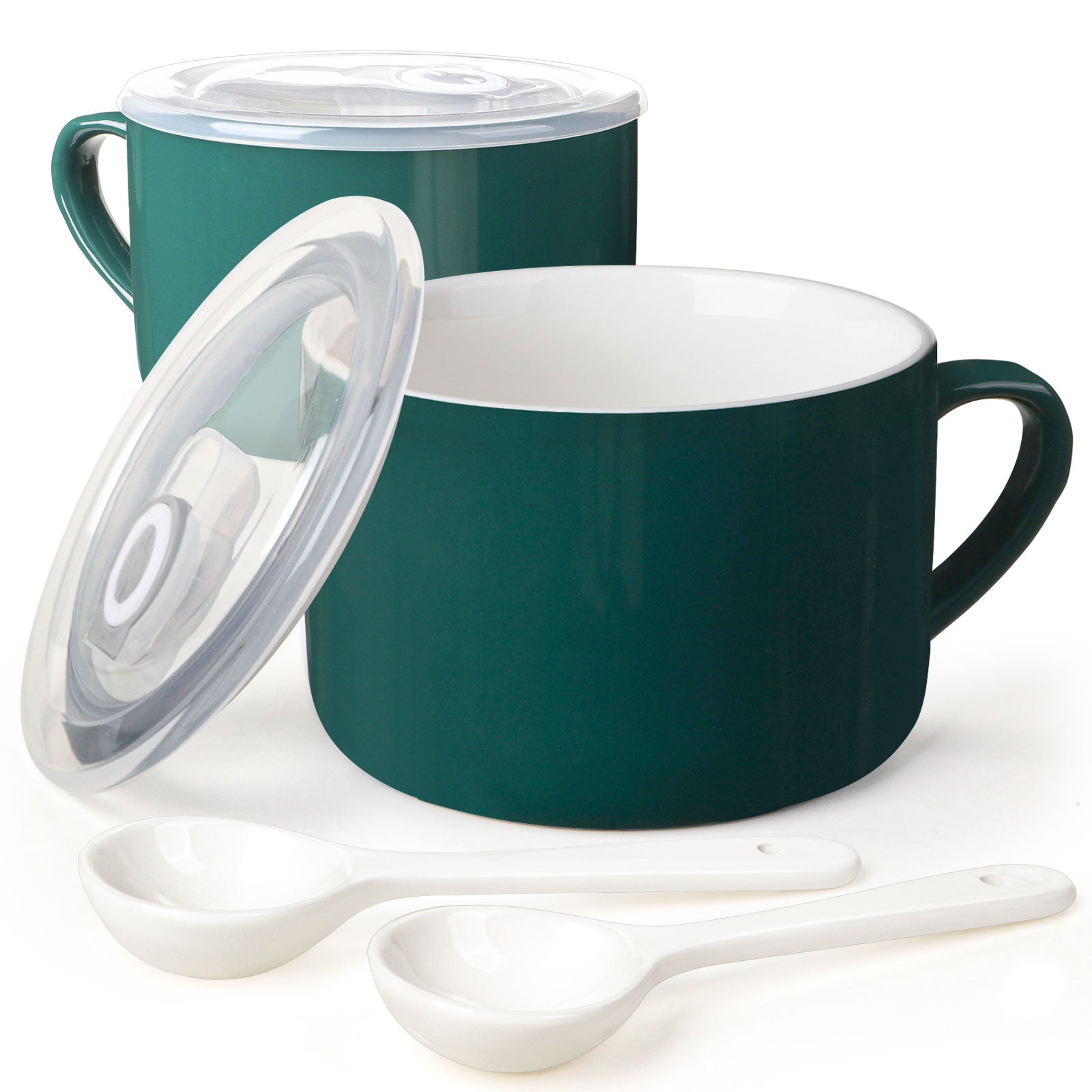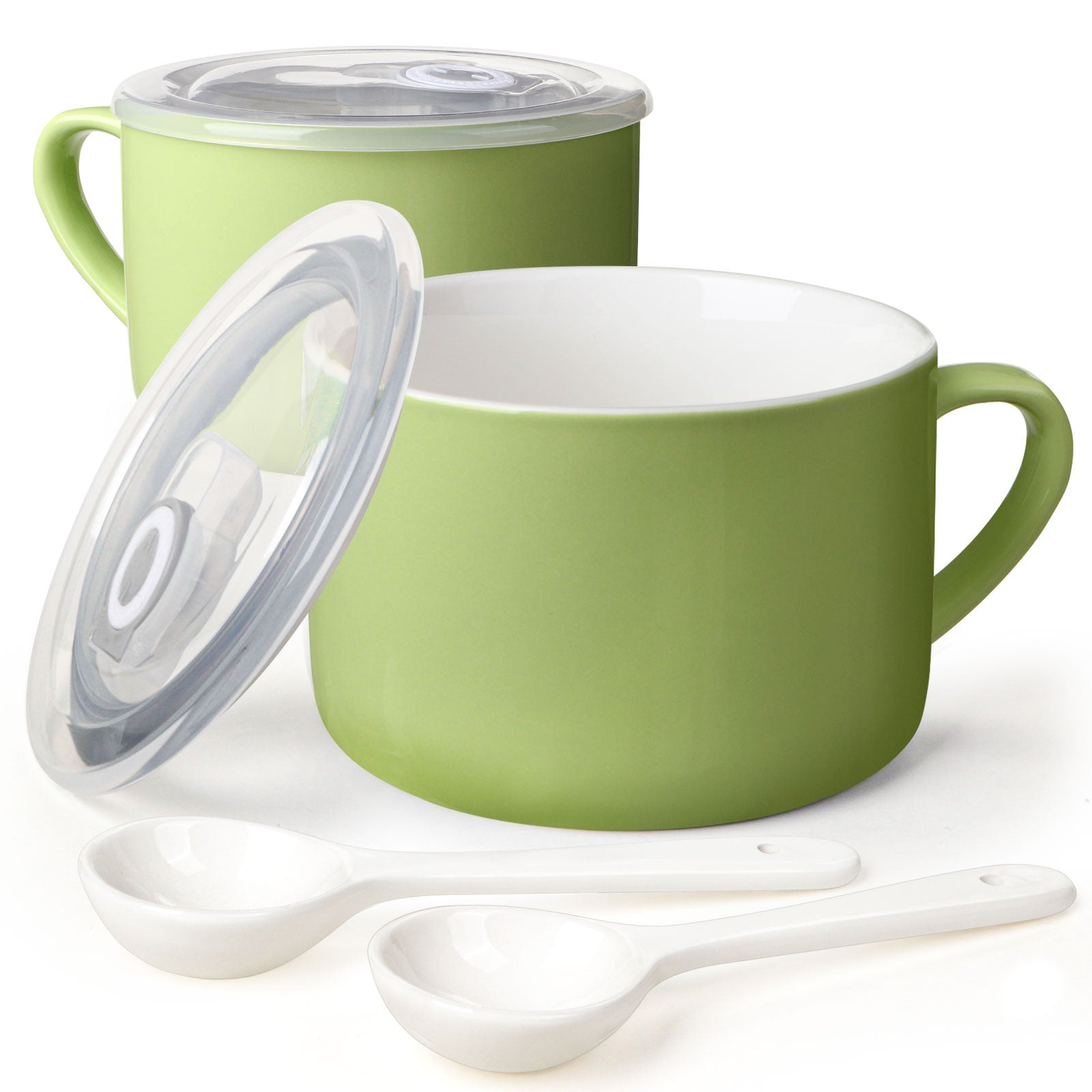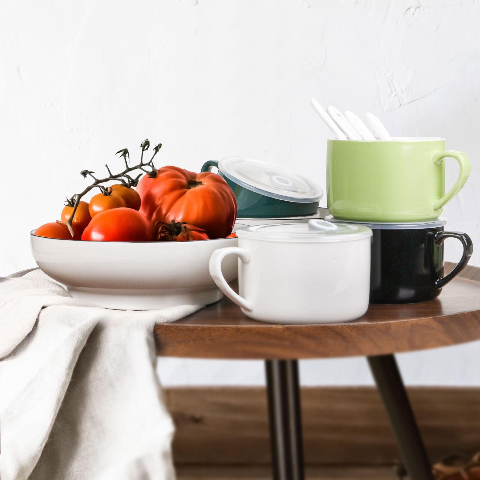 -  【SOUP BOWLS WITH LIDS】Simple modern solid color design, comes with food grade PP lid which has a expiration reminder function button, which can be used as a time dial and a vent valve. And the handle of ramen bowl is comfortable to grip. Perfect size is suitable for men or women.