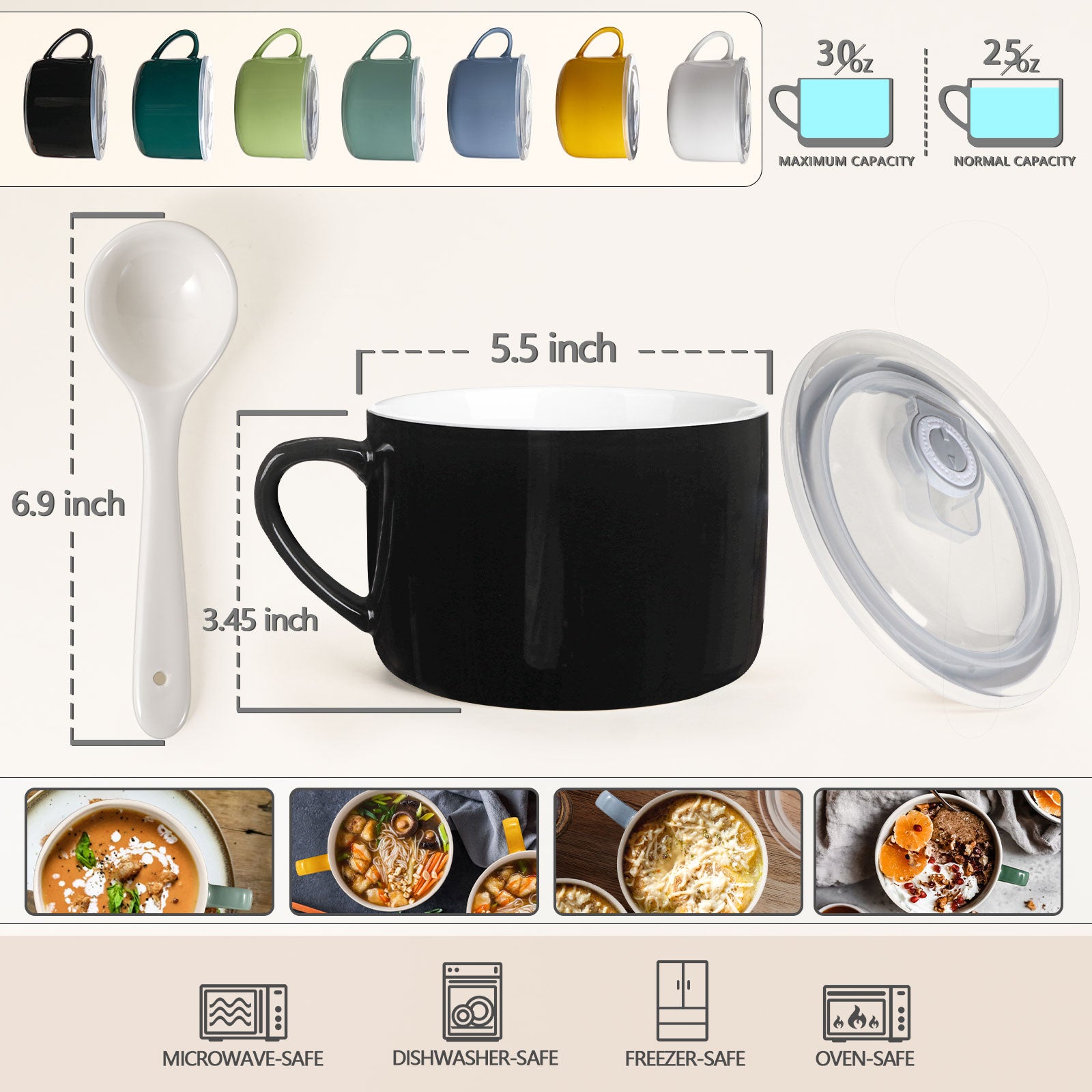 -  【MULTIPLE USES】The 30 oz large capacity soup bowls can meet most of the daily use. It's suitable for instant noodels or saving food in refrigerator. Easily store your extra food with this soup containers with lids! Not just for soup, our soup mug can also be used for cereal, ramen, stews, casseroles, snacks, salad, pasta and more.
